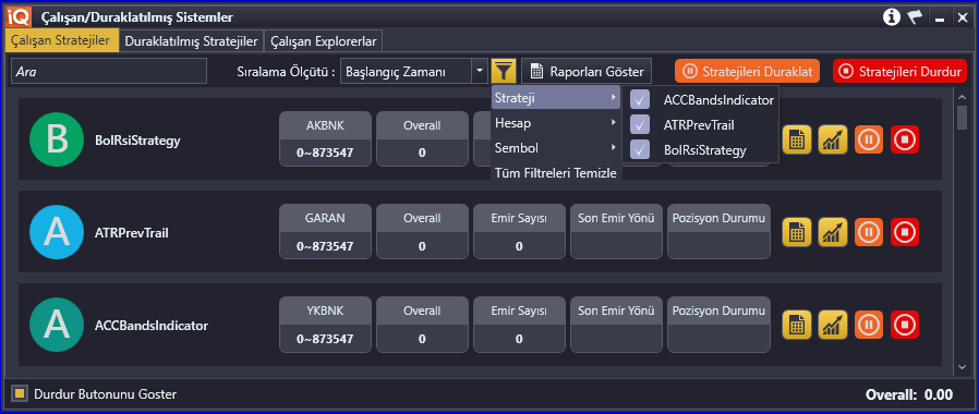 Çalışan Duraklatılmış Sistemler penceresinde hesaplanan overall filtrelediğiniz stratejilere göre gözükecek şekilde düzenlendi. #
