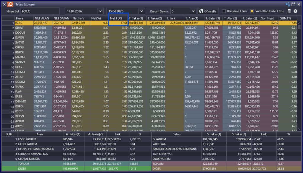 Takas Explorer analizine NET FD% kolonu eklendi. #